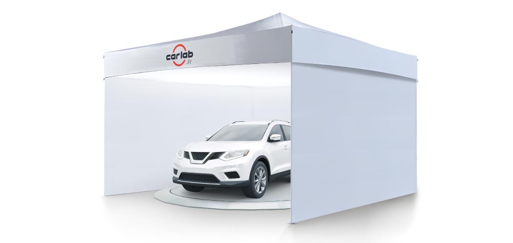 La cabine photo compacte pour voitures, adaptée à tous les espaces, pour habiller votre plateau tournant.